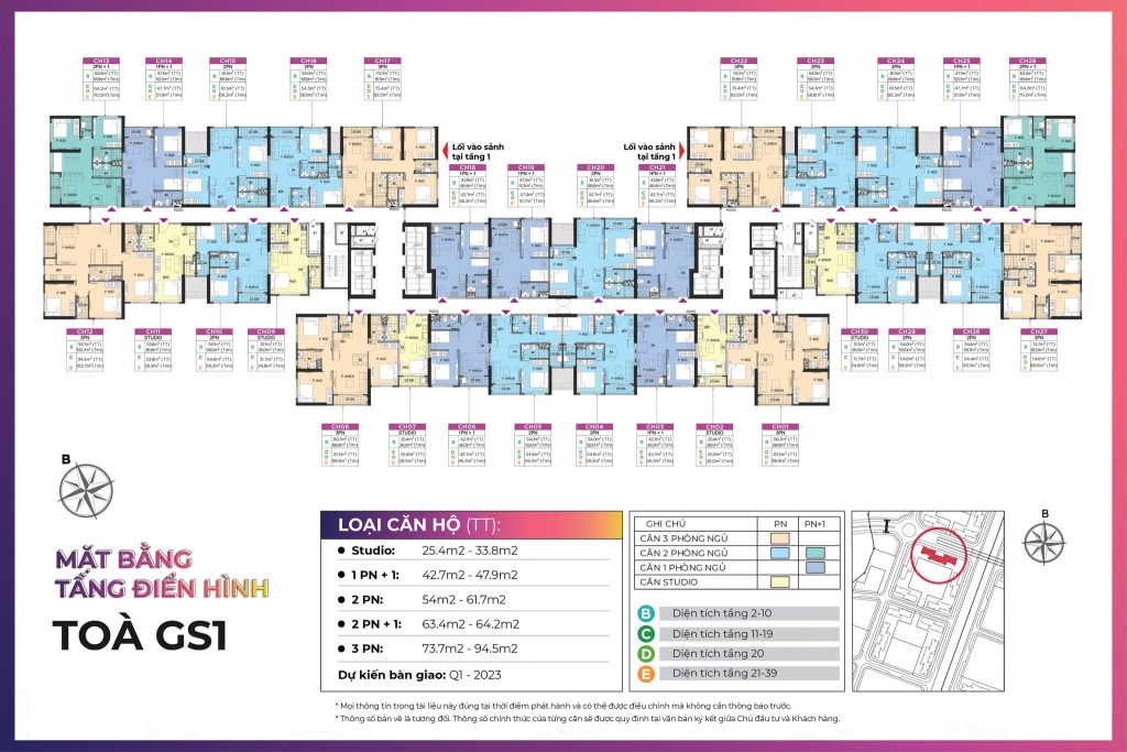 Các tòa GS1 GS2 GS3 cung cấp đa dạng loại hình căn hộ, phù hợp cho cả khách mua ở lẫn đầu tư: